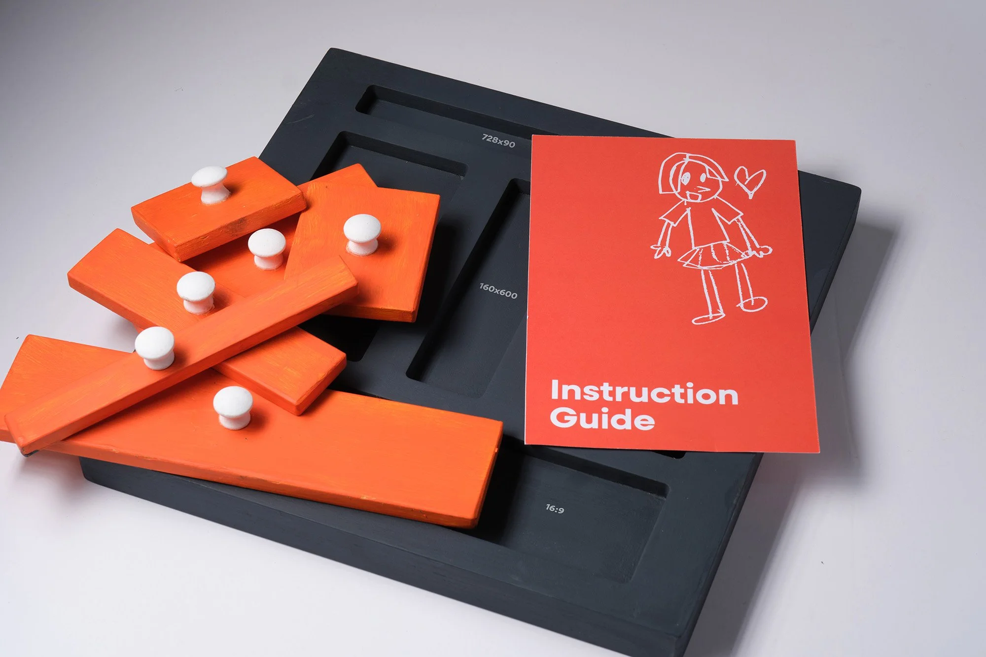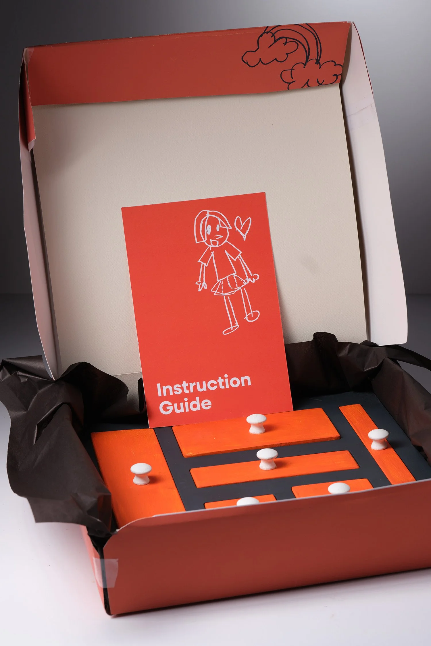 We worked with a semi-professional laser-cutter to make the wood pieces, and assembled, designed the packaging, and painted it ourselves.
